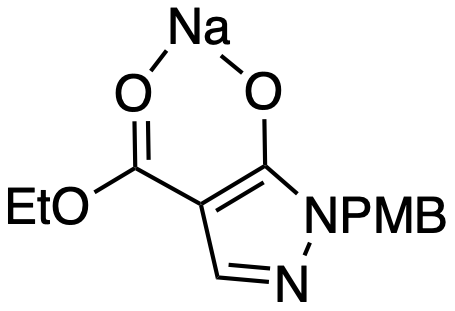 | 10.14469/hpc/11298 | Compound 11: (4-(Ethoxycarbonyl)-1-(4-methoxybenzyl)-1H-pyrazol-5-olate)sodium |
