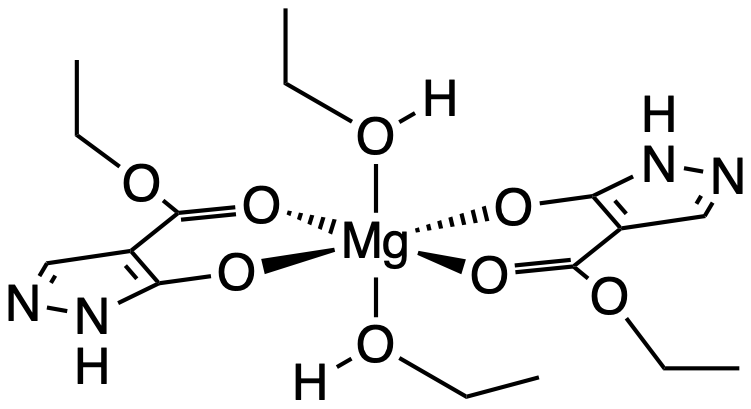 | 10.14469/hpc/11339 | Compound 18: Bis(ethanol) bis(4-(ethoxycarbonyl)-1H-pyrazol-5-olate)magnesium |