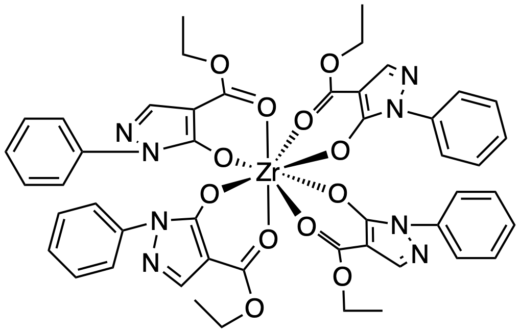 | 10.14469/hpc/11373 | Compound 34: Tetrakis((4-(ethoxycarbonyl)-1-phenyl-1H-pyrazol-5-yl)oxy)zirconium |