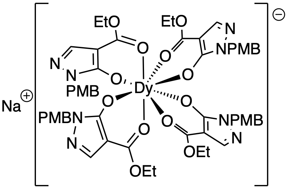 | 10.14469/hpc/11408 | Compound 65: Sodium(I) tetrakis((4-(ethoxycarbonyl)-1-(4-methoxybenzyl)-1H-pyrazol-5-yl)oxy)dysprosium |