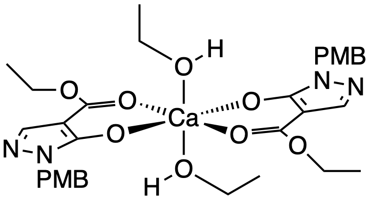 | SMILES | [H]O(CC)[Ca]12(OC3=C(C(OCC)=O1)C=NN3CC4=CC=C(OC)C=C4)(OC5=C(C(OCC)=O2)C=NN5CC6=CC=C(OC)C=C6)O([H])CC |