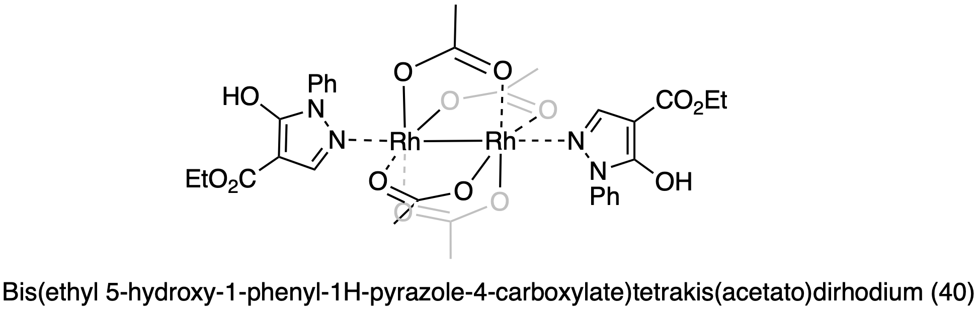 NMR Data for Bis(ethyl 5-hydroxy-1-phenyl-1H-pyrazole-4-carboxylate)tetrakis(acetato)dirhodium (40), 1H, 13C, HMQC