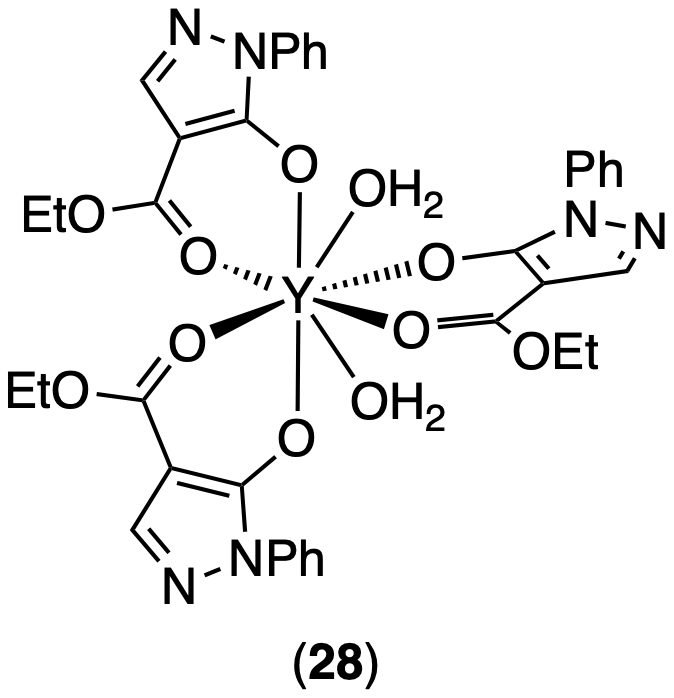 NMR Data for Tris((4-(ethoxycarbonyl)-1-phenyl-1H-pyrazol-5-yl)oxy)yttrium (28), 13C