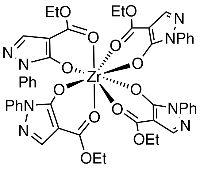 | inchi | InChI=1S/4C12H12N2O3.Zr/c4*1-2-17-12(16)10-8-13-14(11(10)15)9-6-4-3-5-7-9;/h4*3-8,15H,2H2,1H3;/q;;;;+4/p-4 |