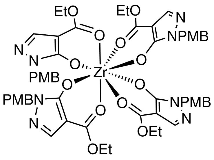 | inchi | InChI=1S/4C14H16N2O4.Zr/c4*1-3-20-14(18)12-8-15-16(13(12)17)9-10-4-6-11(19-2)7-5-10;/h4*4-8,17H,3,9H2,1-2H3;/q;;;;+4/p-4 |