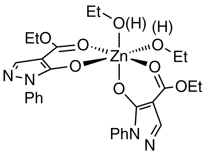 | SMILES | [H]O(CC)[Zn]12(OC3=C(C(OCC)=O1)C=NN3C4=CC=CC=C4)(O([H])CC)OC5=C(C(OCC)=O2)C=NN5C6=CC=CC=C6 |