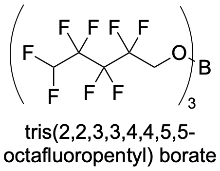 | 10.14469/hpc/14728 | NMR data for compound 37d. tris(2,2,3,3,4,4,5,5-octafluoropentyl) borate |