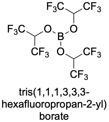 | 10.14469/hpc/14837 | NMR data for compound 37a. tris(1,1,1,3,3,3-hexafluoropropan-2-yl) borate |